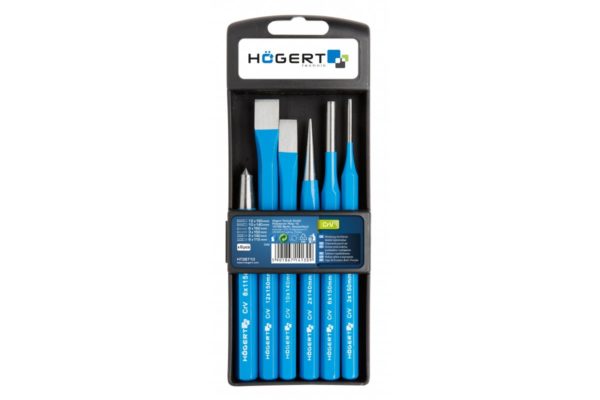 OписаниеНабор 6 шт. зубил, кернеров и пробойников. Предназначен для резки, разметки и пробивания твердых материалов.